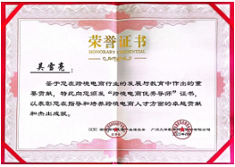 图5:吴雪亮、李健欣老师获“跨境电商优秀导师”证书