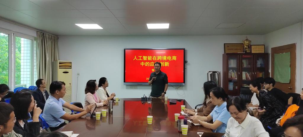 李文秀致辞,她希望通过本次报告,促进校企在跨境电商教育中的交流和合作,老师们可以更积极拥抱新技术和新工具,紧跟跨境电商的发展前沿,促进教学、科研的良性发展与循环。