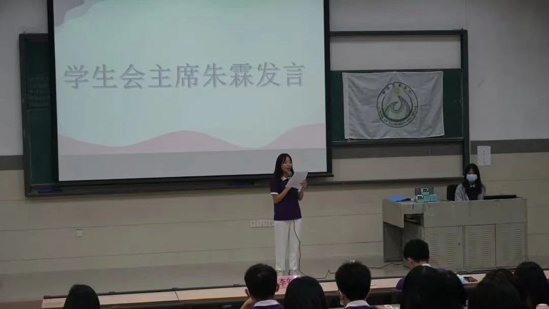 第五部分是现任主席讲话。主席对过去一年学生会的工作做一个简单的总结。且热烈欢迎21级新成员的加入并希望20级成员砥砺前行。并分享三点在学生会一年多的心得体会:抓住学生会平台锻炼自己、多和师兄师姐交流、平衡好学习与工作。最后呼吁全体成员努力进取,以积极的心态工作,发挥热情、发挥才干,谱写出学生会未来更加壮丽的篇章。