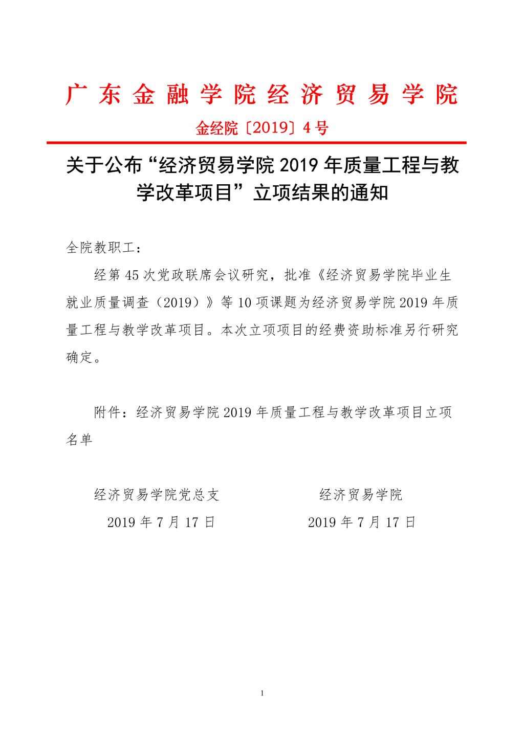 关于公布“必赢线路检测中心2019年质量工程与教学改革项目”立项结果的通知