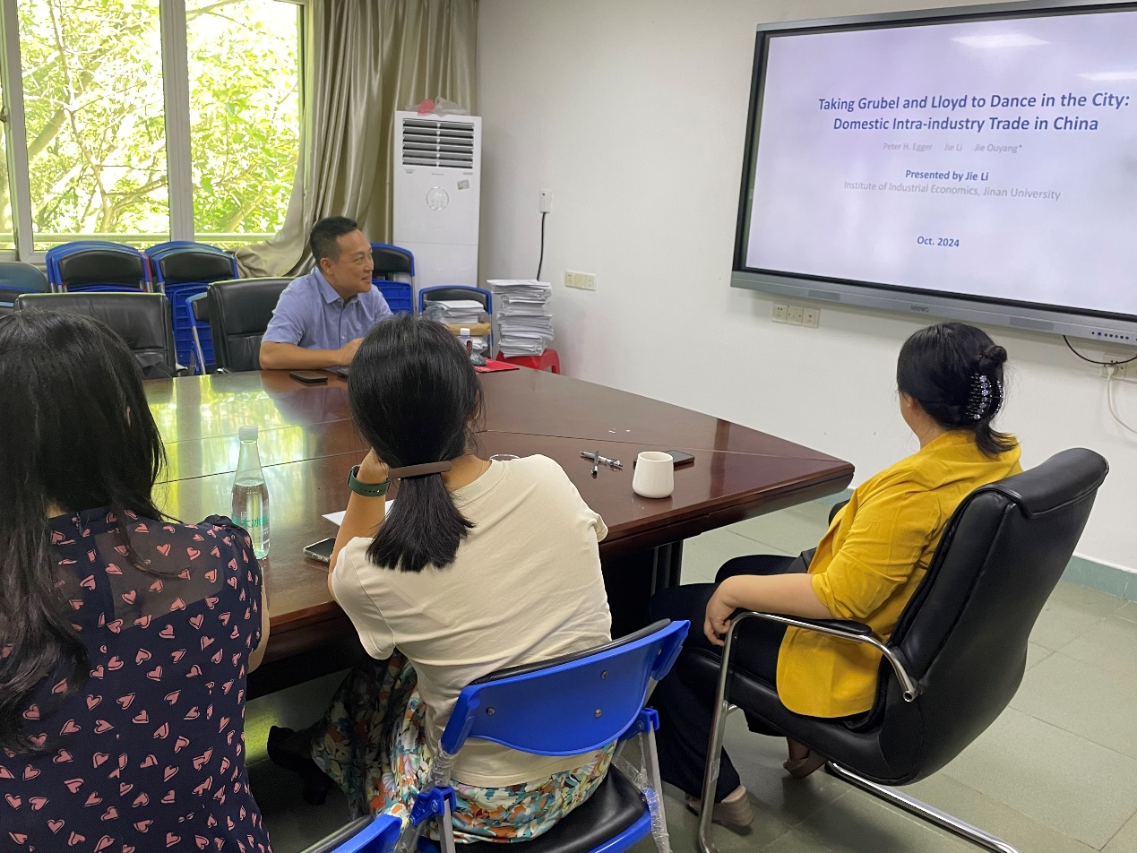 10月15日上午,我院南粤经济工作坊2024年第4期成功在学院会议室举行,本次学术工作坊主题是 “中国城市间产业内贸易的影响因素分析:基于GL指数的视角”。讲座由暨南大学产业经济研究院副院长李杰教授主讲,由必赢线路检测中心院长李文秀教授主持。学院众多青年教师出席会议,现场气氛热烈,讨论深入。