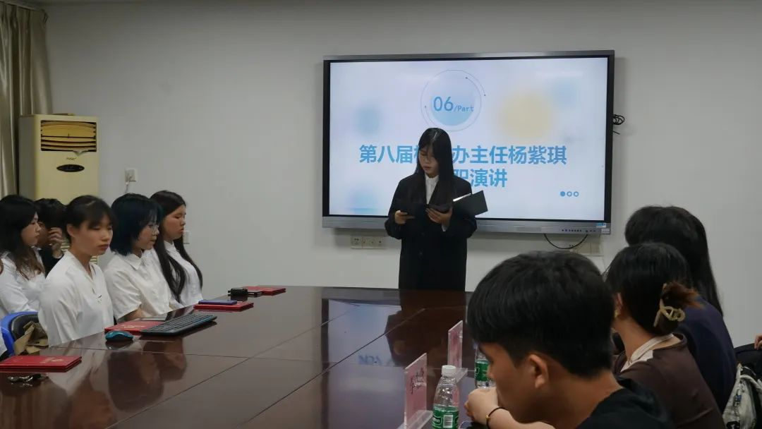 首先她对各位同事的支持与信任表示感谢,并指出在师兄师姐的努力下,校友办的规模与组织架构日益完善,21级的我们接过接力棒,更应该开拓进取,为经贸校友与学校、同学构建一个更好的沟通平台。同时,主任从组织管理、开展常规工作和服务意识三个方面向大家阐述往后的工作安排和目标: