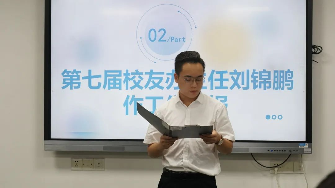 为了让老师和同学们了解校友办过去一年中的各项成绩,刘锦鹏主任从基础常规工作、意义重大活动和组织建设三个方面对第七届校友办的工作进行汇报: