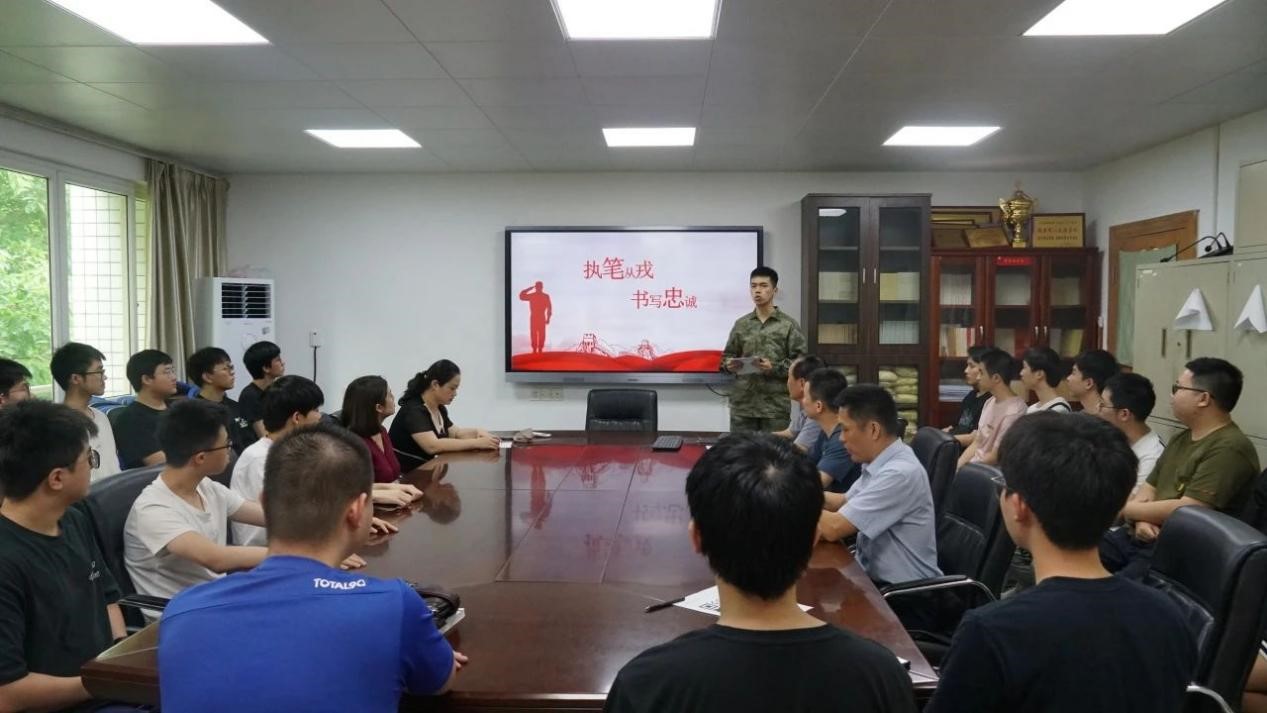 退伍军人王佳同学从新兵连、部队训练、执行任务三个方面分享了自己军旅生涯的真实感受。两年的部队经历不仅锻炼了他的意志品质,更使他深刻认识到中国人民解放军的神圣职责和光荣使命,虽然已经脱下了戎装,但是这两年的经历已深深烙刻在了他的心里,退伍军人的光荣身份也将伴随他一生,成为他勇往直前的精神动力。最后,王佳鼓励同学们要积极参军入伍,做到文能融通天下,武能保家卫国!