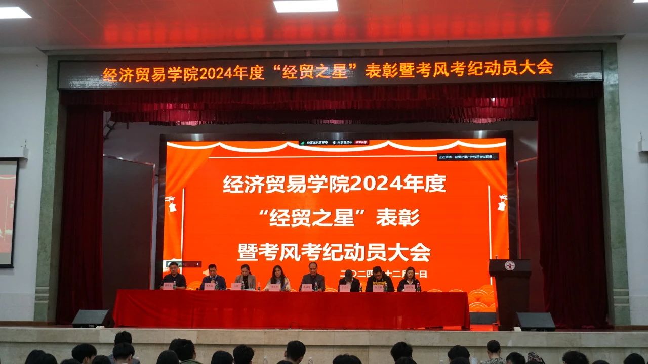 12月10日下午,必赢线路检测中心2024年度“经贸之星”表彰暨考风考纪动员大会在校本部大礼堂召开。学院党政领导班子全体成员、各年级辅导员、班主任及校本部22级、24级专升本全体学生参加了此次大会。