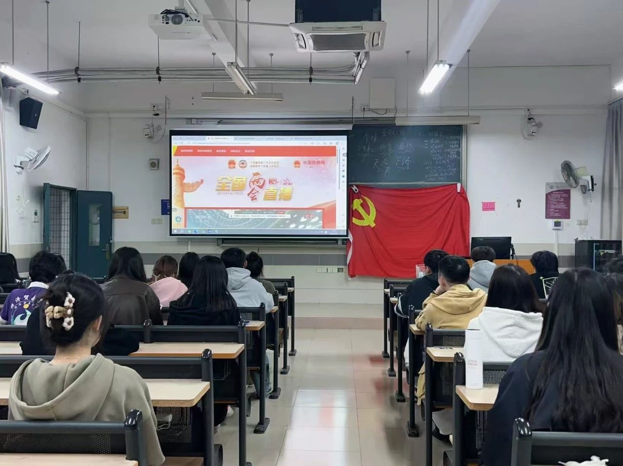 全体成员共同观看新闻联播视频——《全国政协十四届三次会议开幕会》。学生第一党支部的邱艺涵同志,学生第二党支部的陈雪菲同志和学生第三党支部的彭燕玲同志就会议内容发表了自己的学习感想。