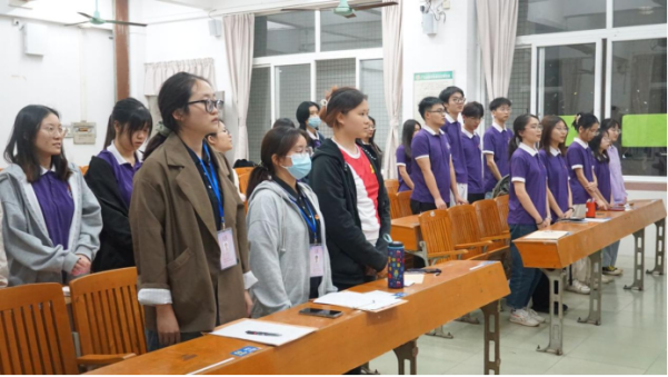 紧随其后是合唱团歌。各支部的同学们全体起立,合唱团歌。