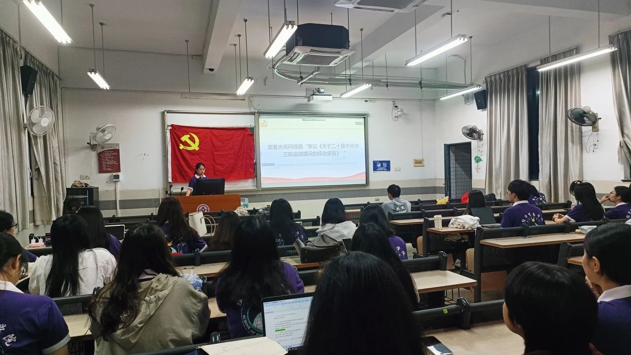 学生党员代表邱艺涵、邱雅轩及柯春茹就学习视频内容发言。他们认为巡视工作不仅是对党组织和党员领导干部的一次“政治体检”,更是对党的纪律和规矩的一次全面审视,彰显了党中央全面从严治党的坚定决心。在今后的学习工作中,会以更高标准要求自己,增强纪律意识,为推进各项事业高质量发展贡献力量,坚定维护党的良好形象与公信力。