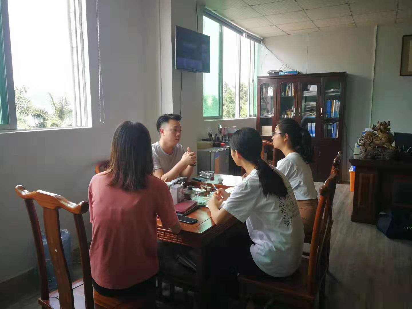 当天上午10:00,校友办参访人员到达校友企业,受到了谭春宏师兄的热情款待,并开始了气氛活跃交流融洽的“座谈交流会”。首先,师兄大概讲述了现今深圳市着重于高新科技产业发展的产业规划,并解释了公司地理位置选择郊区的原因。紧接着,师兄谈及个人工作经历,毕业时本着往国贸专业对口的方向选择求职意愿,以此找到了现在就职的公司并一直工作了11年有多。
