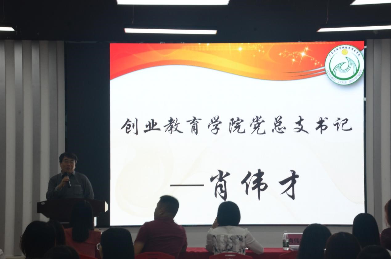 紧接着,创业教育学院肖伟才书记希望广大学子可以借助学校的扶持,勇于创业,可以入驻融创空间得到导师的专业指导。同时点出大学生如何以实际可行的创意想法去实现创业之路,介绍大学生可以通过参加的创业比赛从而去实现自己的创业梦想。