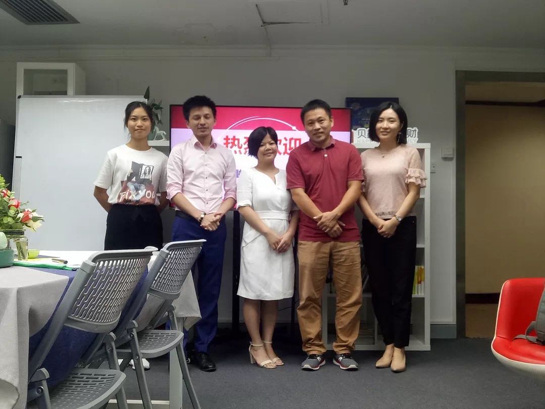 当晓思老师和同学们刚到达贝鑫宝妈理财所在的楼层,刘萍师姐就已站在电梯口处等待了。在贝鑫宝妈理财,3位师兄师姐热情地招待老师和同学们。大家围桌而坐,回忆过去,聊聊现在,还畅谈了未来。