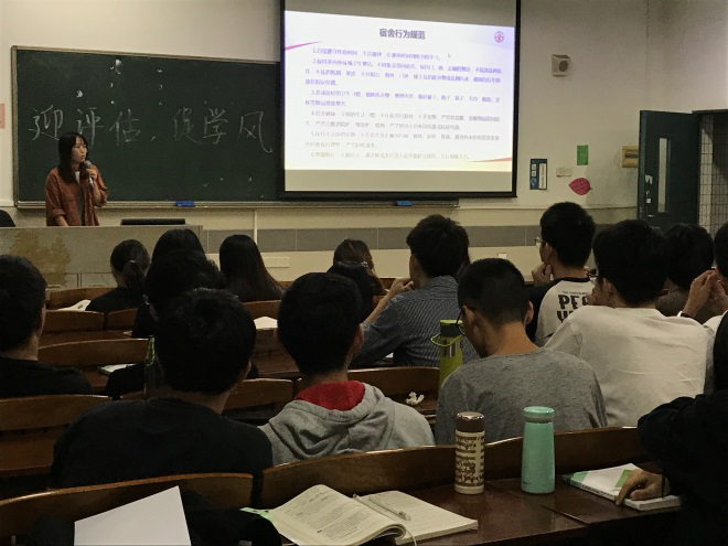 10月28日中午,必赢线路检测中心召开了“迎评估,促学风”动员会,各班班长参加了会议。会上,学院党总支书记李玲玉围绕“我院学子在评估中应当如何做”等问题展开,重点从课堂、宿舍和校园等方面阐述具体行为规范。强调班长、班干要发挥好带头作用,通过召开主题班会等形式引导班级同学认真学习宣传评估知识,严格遵守大学生行为规范。倡导同学们积极了解校情和院情,自觉遵守校纪校规,规范自身行为。党总支副书记钟兰强调了这次评估的标准将会是以后学校和学院管理的常态,希望同学们都能高度重视这次评估,严于律己,以积极的姿态、主人翁的精神迎接这次的教学评估。最后,辅导员陈玮鸿老师针对本次评估工作和召开主题班会进行了具体部署。