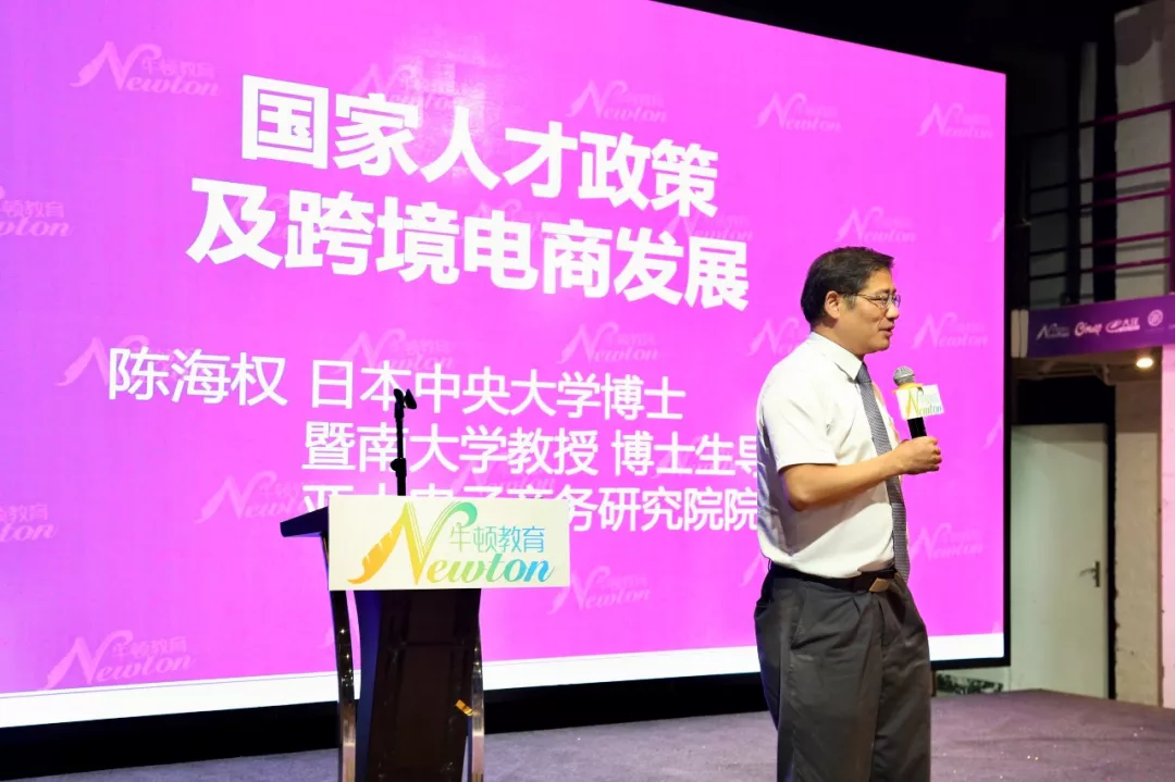 会上,亚太电电子商务研究院院长、暨南大学教授、博士生导师陈海权先生分享了对国家人才政策变化与跨境电商发展之间关系的见解。他认为:高校与企业合力的多层次人才培养体系才是促进行业发展的动力。