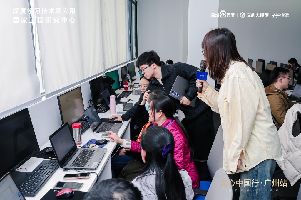 “文心中国行·广州站”活动汇聚广州政产学研各界的领导、专家、企业嘉宾,共同探讨文心大模型在区域产业发展中的具体应用和实践经验,分享交流如何把握大模型时代的发展新机遇。在主论坛活动中,教师们听了百度 AI 技术生态副总经理周奇以《深度学习+大模型 - 塑造新质生产力,加速产业智能化升级》为主题的分享。他生动地解读了技术变革如何驱动应用创新,进而创造商业价值,推动新一轮技术变革实现正向循环,通过对现代商贸等关键行业的实际应用案例的分享,展示了飞桨与文心大模型对千行百业智能化进程的强劲推动。