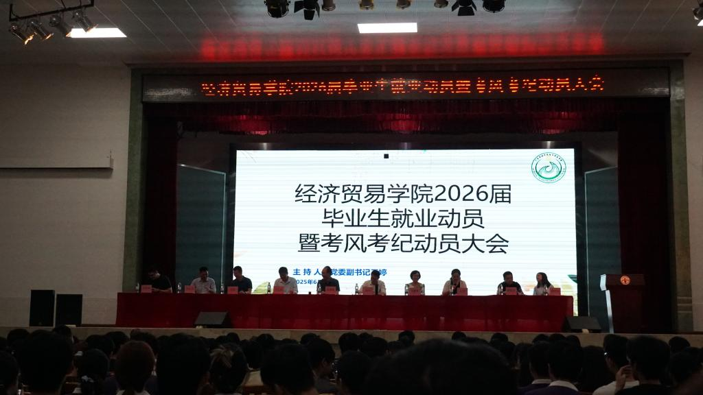 6月3日晚上七点,必赢线路检测中心在学校大礼堂成功召开2026届毕业生就业动员暨考风考纪动员大会。学院领导、辅导员、班主任,以及2026届全体学生参加了会议。会议还邀请了研究生院党总支书记郑州、信用管理学院党委副书记余汉钧、保卫处肖军老师,与学生进行分享和交流。会议由院党委副书记王婷主持。