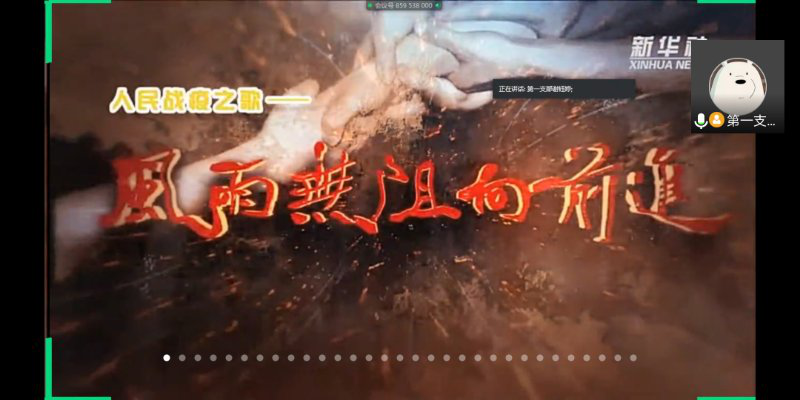 本次会议共有五项议程。首先,全体人员奏唱国歌并举行了党员宣誓,重温对党庄严而神圣的誓言。随后,全体人员观看视频,深入学习习近平总书记关于统筹推进新冠肺炎疫情防控和经济社会发展工作部署会议的重要讲话精神。紧接着,主持人介绍了在抗击疫情过程中奋勇献身的先进党员事迹,学生党员代表在大会上分享学习心得。他们表示,目前众多“白衣天使”以及志愿者仍坚守一线,为打赢疫情防控阻击战尽心尽力,作为一名合格的党员须具备无私奉献的品质,呼吁全体党员增强责任担当意识,认真学习并贯彻“平凡如你,温暖如光”先进党员精神,并按照上级党组织的要求落实并遵守各项新冠肺炎疫情部署工作任务。