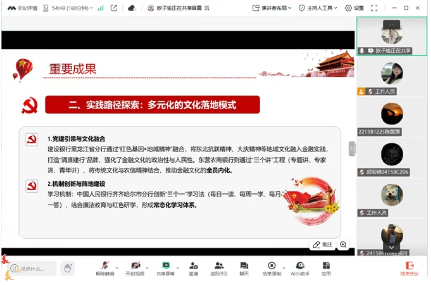 为充分发挥青马学员“点亮一盏灯、照亮一大片”的示范引领带动作,青马学员们围绕中国特色金融文化主题进行微宣讲,于4月27日举办了“青马先行,点亮金融文化之灯”主题线上宣讲会。宣讲会通过关键词解读、中国特色金融文化内涵、发展历程与成就、五要五不要求与实践路径的讲解,结合了理论学习与实际案例,强调了青年在金融文化建设和金融高质量发展中的责任与担当。