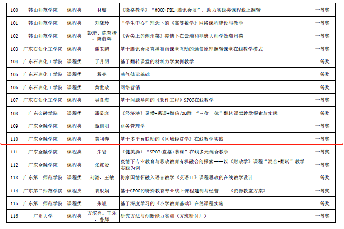 黄利春老师的“基于多平台联动的《区域经济学》在线教学实践”案例,获得广东省本科高校在线开放课程指导委员会第三批“疫情阶段在线教学优秀案例”一等奖。