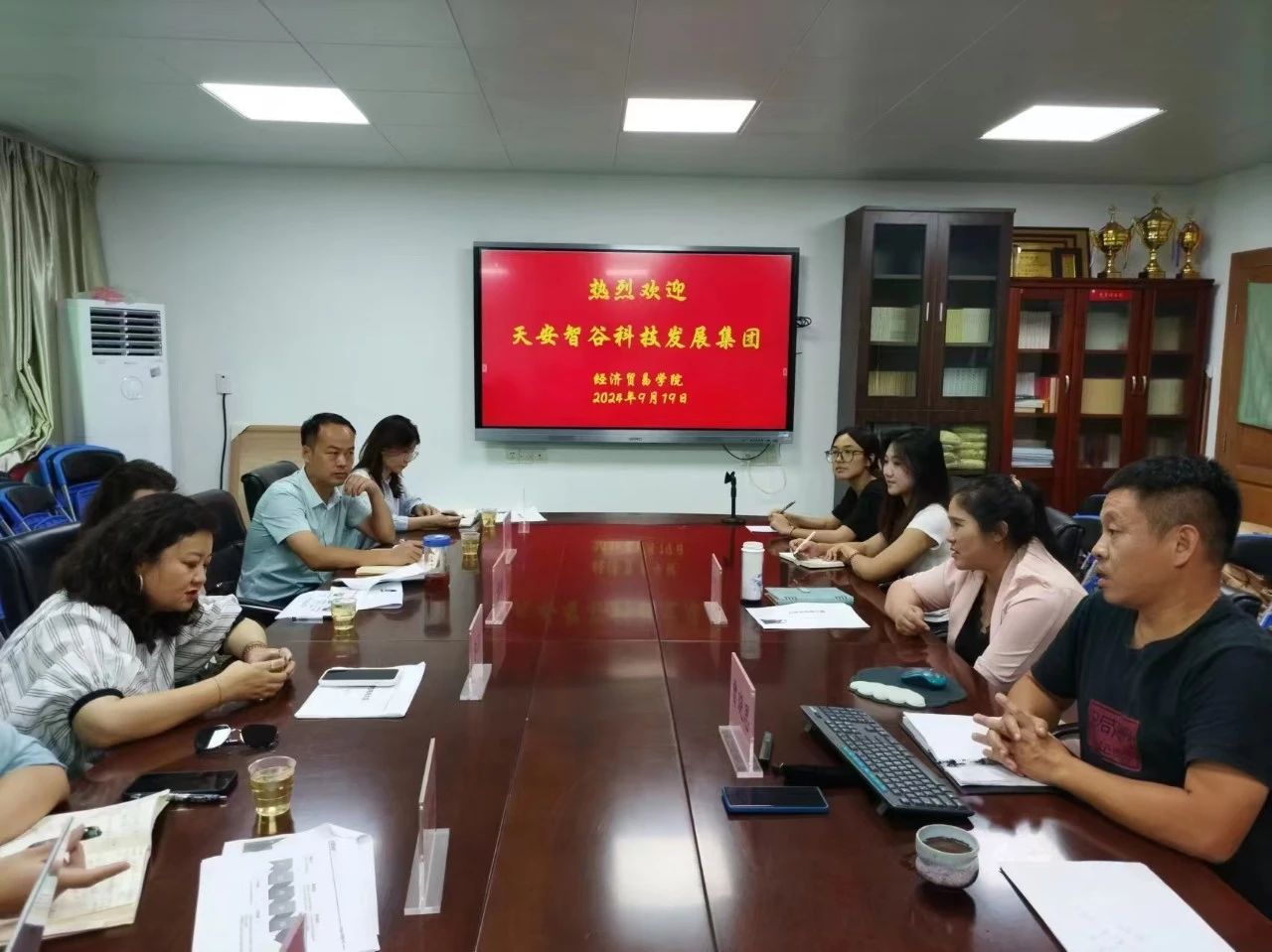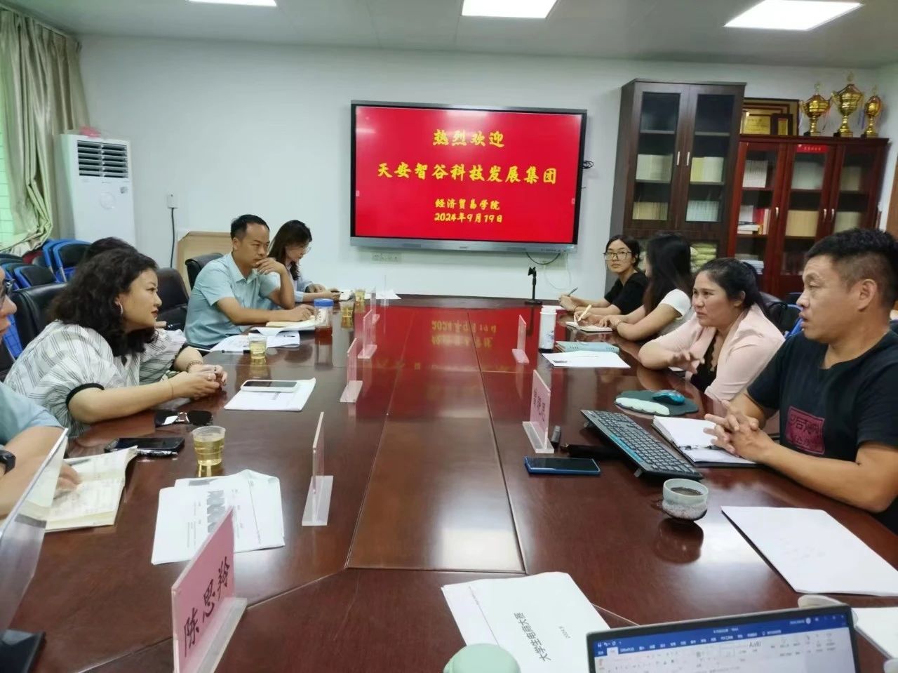 2024年9月19日下午14:50,天安智谷科技发展集团与经贸院召开了重要会议,旨在探讨双方在教育资源及课程开发上的合作。这次会议吸引了多位重要参与者,包括李文秀院长、曾晓思老师及天安智谷的李洁、张玲、黄楚怡、秦多葵、向智健、陈思羚六位代表,大家共同聚焦于如何利用高校资源推动企业发展。